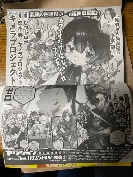 134 464 担当さんに月刊アクション2月号を頂いたのですが載ってる…!!!しかも縦でかい!!!!! #キメプロ 21/12/30 13:01