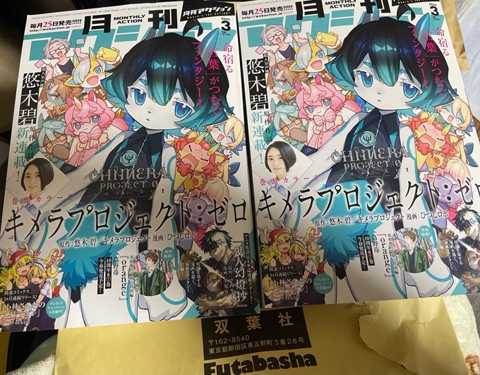 189 631 今日ですか?!今日ですよね!!?本日発売の月刊アクションさんにて「キメラプロジェクト:ゼロ」の連載が始まりました!!第1話載ってるはずです!!本屋さんでお見かけの際はお!これかぁ!とレジに持って行って頂けたら幸いです!面白い漫画になってると思いますどうぞよろしくお願いします!!! 22/01/25 00:08