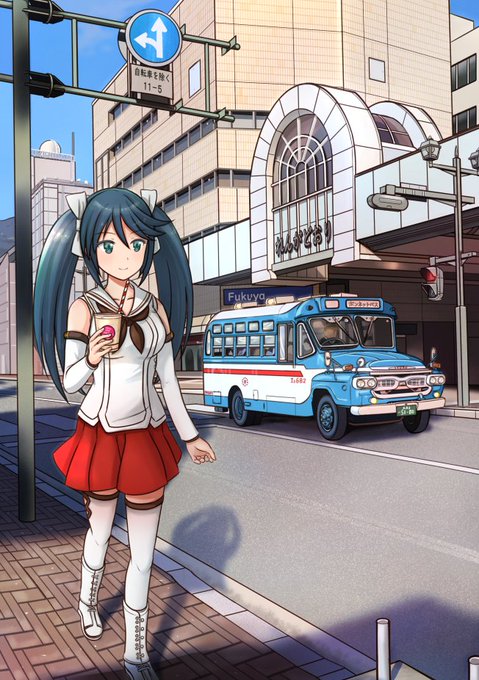 ボンネットバスが今も大切に保存されていることや、再び走らせて下さったことに感謝し、また走る姿を見れたら良いな…と思いながら、れんがどおり前を走るボンネットバスと、五十鈴が並んで歩いている姿をイメージして描いてみました。 #艦これ