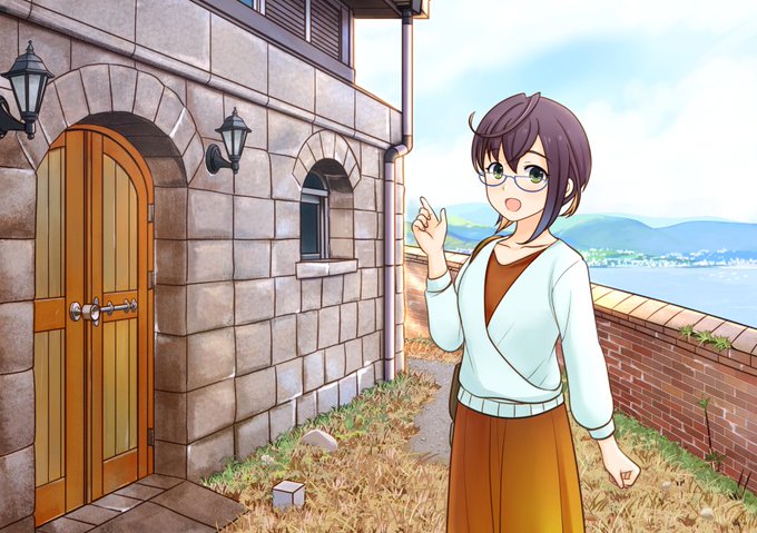 先日、江田島の三高山砲台跡へ行ってきました。 広大な敷地に今も残る明治時代の建造物が幻想的で、また、兵舎の先には那沙美瀬戸を一望できるパノラマ展望台があり、とても美しい景色を見ることが出来ました。 提督さんと一緒にパノラマ展望台に向かう沖波さんのイメージで描いてみました。 #艦これ