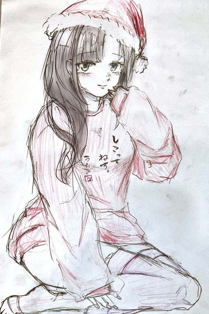 17 35 色違いしこT、しこスウェ発売僕体好!素敵なクリスマスプレゼントだ…… しこスウェ赤&サンタ帽子おねえさん #詩子あーと 22/12/26 17:08