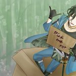 #ひといの1日1笹さに 七日目 刀さに♀/笹さに♀/顔有夢絵 「はは…、オレを投げ捨てるのは骨が折れるよ?」