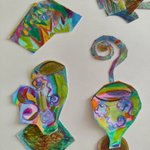 昨日の真夜中と今日の真夜中の不思議なお絵描き 珈琲のインスピレーション キモカワ(笑)可愛くないからキモカワではないか(笑) #インスピレーション #お絵描き #abstractart #空想画 #ポストカード #色鉛筆