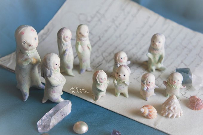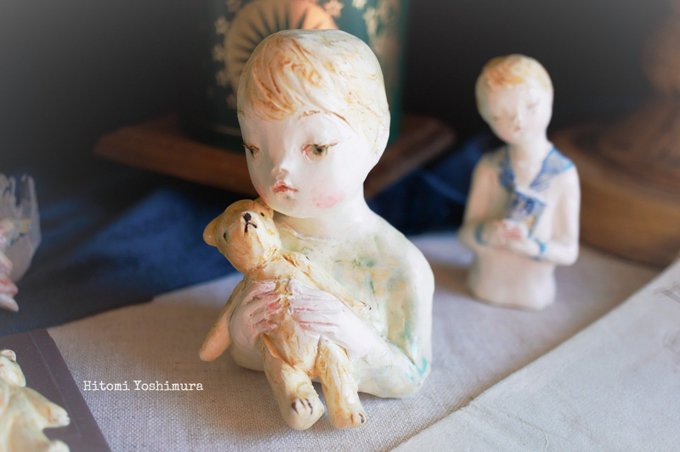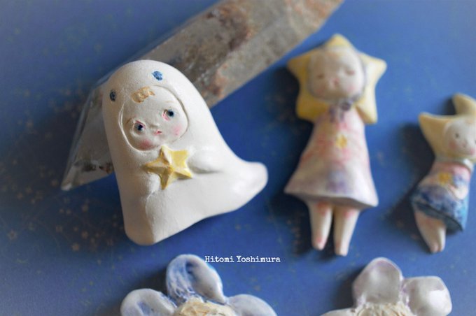 #私の作品もっと沢山の人に広がれ祭り 陶土で一つ一つ作る人形や陶オブジェ、ブローチ等を制作、企画展や催事にて展示販売の他 昨年からソフビ人形の原型、デザインにも取り組んでいます😊ソフビはツバメトイにて製造•販売してます。