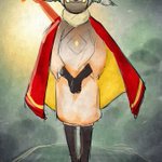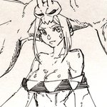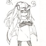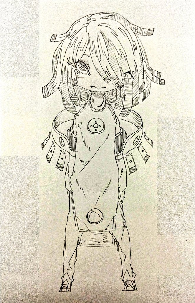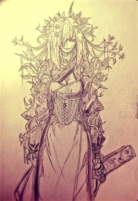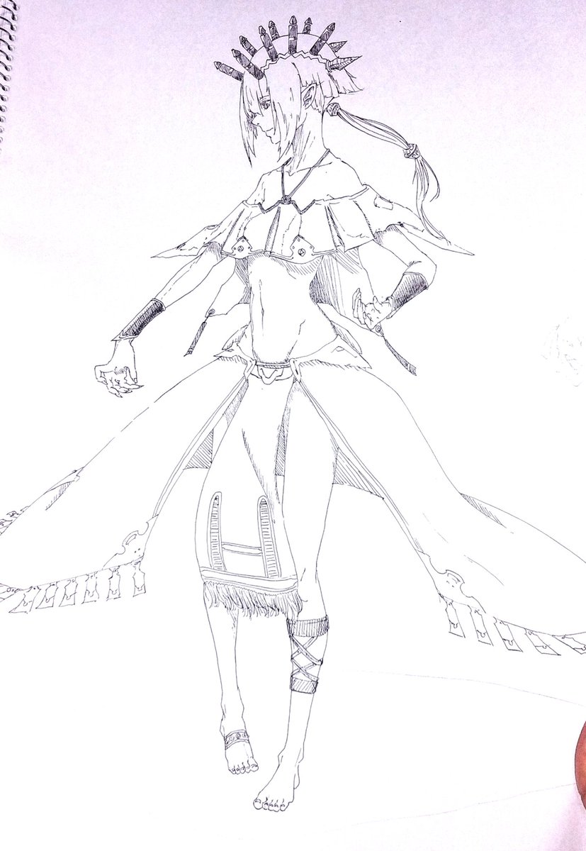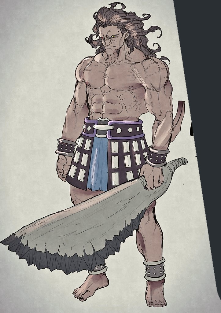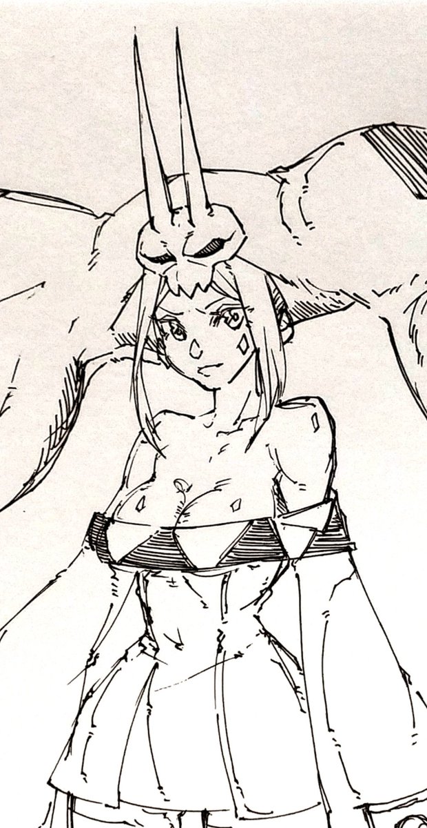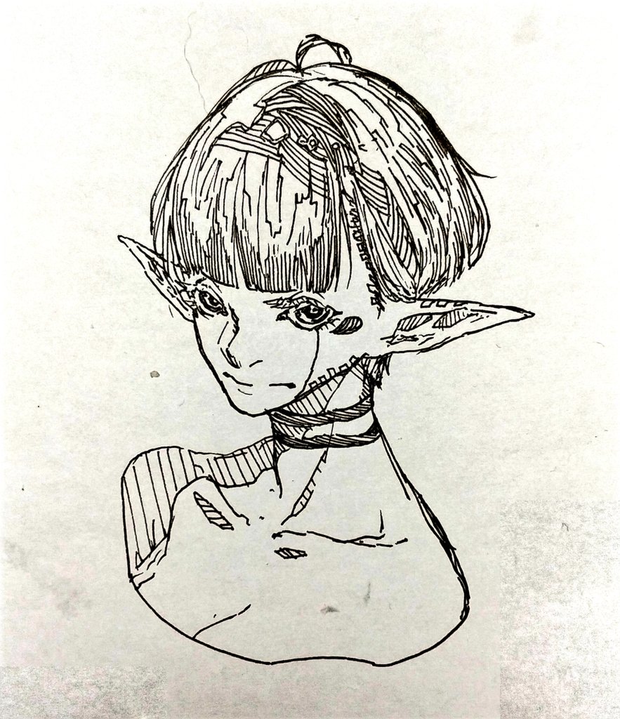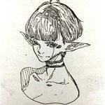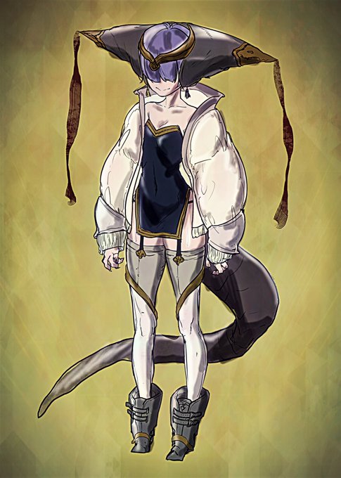 別のアカウントで参加した企画の子です 頭痛がジャマしなければもうちょっと良かった 題は[キャスケット・ピアス・大角・オッドアイ・ポニテ・食べ物持ち・大きなリボン・へそだし]です #キャラデザ被りゲーム #絵描きさんと繋がりたい