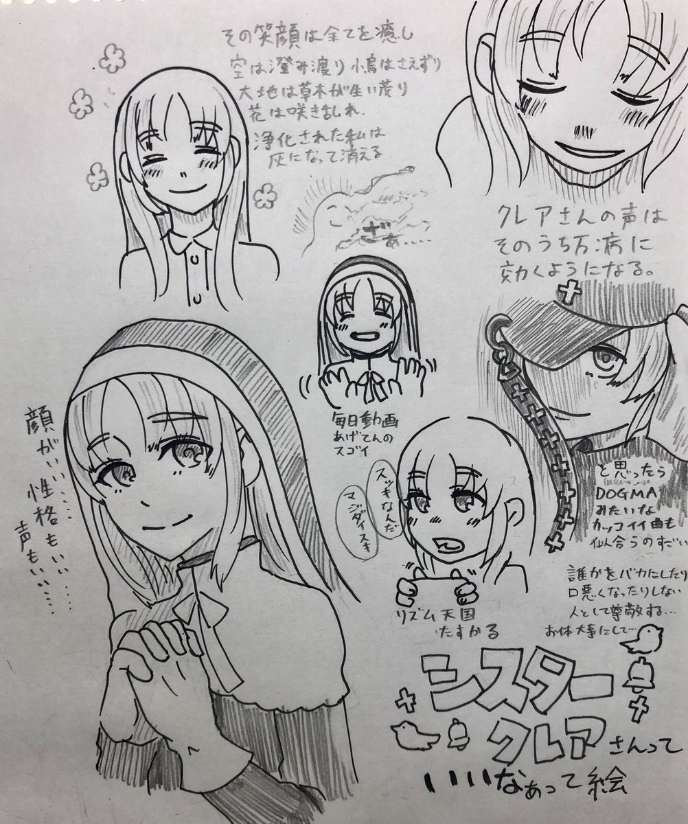 シスター・クレアさんっていいなぁ…って落書き 文字手書きで汚いの申し訳なさ #描いたよクレアさん