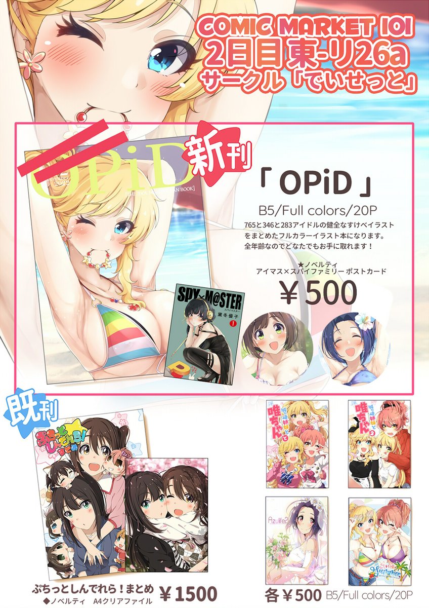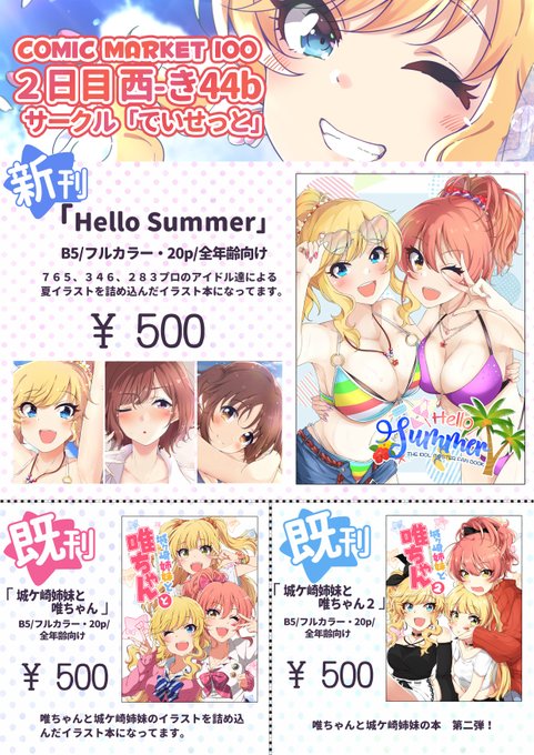 42 102 遅くなりましたがC101表紙&お品書きです! 2日目(12月31日) 東リ-26a でいせっと 水着の唯ちゃんを目印にしてください! 22/12/29 22:42