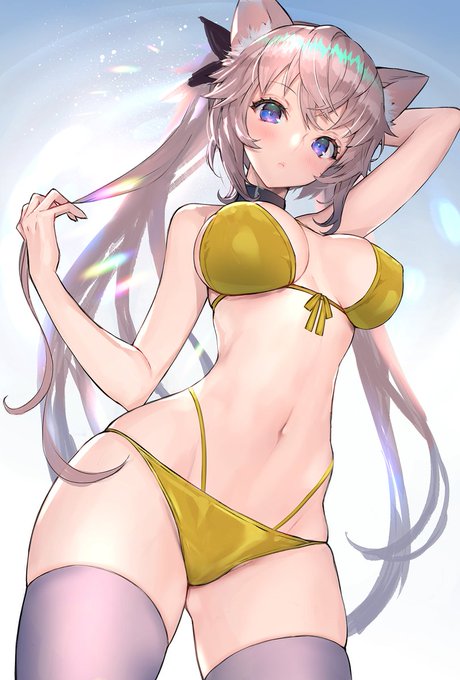 196 1158 👙!ビキニの日! twitter初投稿だったマイクロビキニちゃんの布面積をやや調整した普通ビキニちゃんです(>'-'<) 23/07/05 23:00