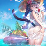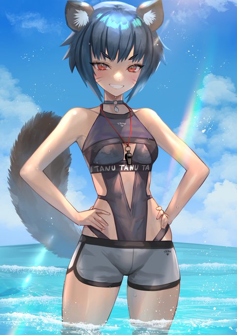 お盆過ぎちゃいましたが今年はなかなか海絵描けないですね…😭悲しい… 去年描いたタヌキちゃん露出調整加筆版です🏖️ ライフガードのバイトをしています