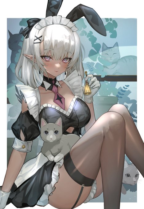 みんなひとやすみメイドバニーちゃん再掲🐱💙🐰(青色調整ver) #バニーの日