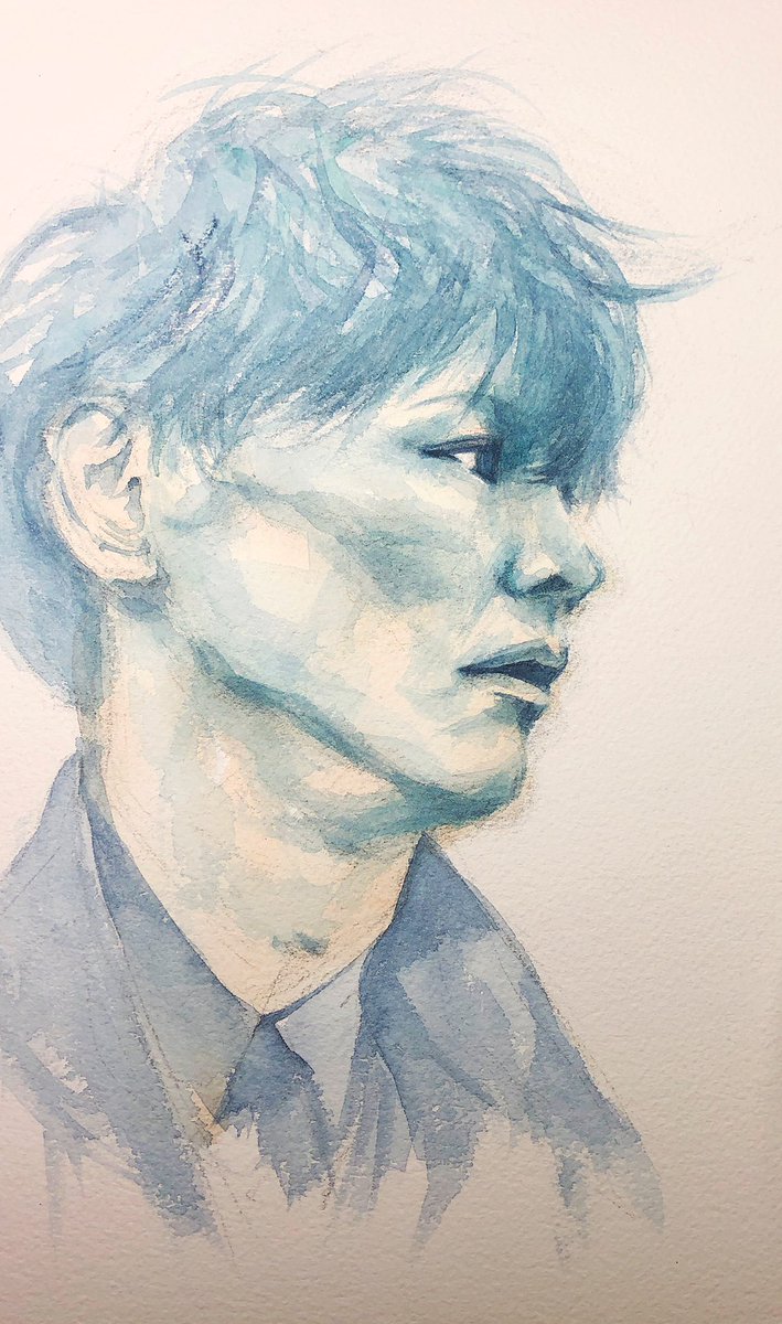 20 239 サカナクションの 山口さんを描いてみました。 #サカナクション #山口一郎 #sakanaction #watercolor #illustration #水彩画 #イラスト 20/08/17 03:46