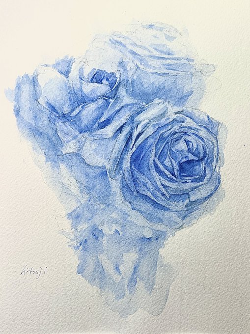 1 5 アルシュの良さを実感する。 #watercolor #rose #blue #illustration #flower #水彩画 #イラスト #バラ #イラスト #花 23/04/16 19:55