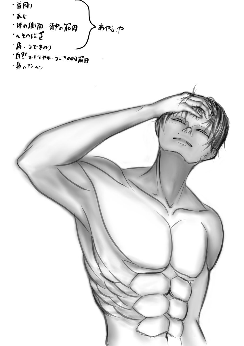 【筋肉練習①】 何も見ないで筋肉を描く(上半身) 今の自分の筋肉の理解度チェック✍︎ あらまぁ…( ¯•ω•¯ )ガンバル #イラスト好きさんと繋がりたい #イラスト #絵描きさんと繋がりたい