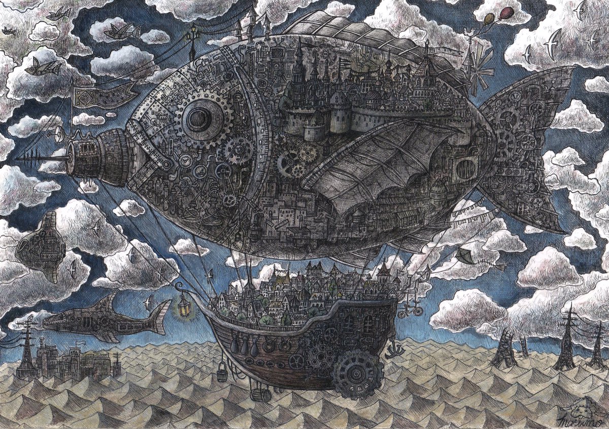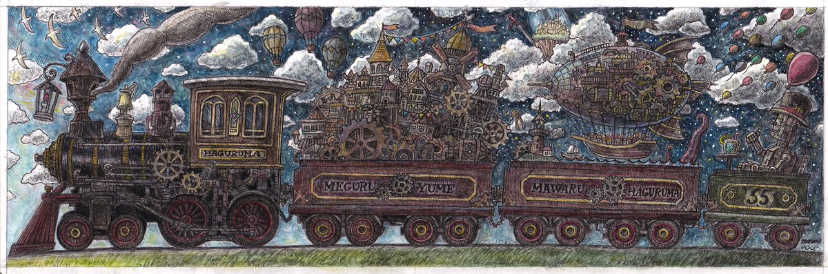新作完成しました‼︎‼︎ 『夢のせて』 サイズ 200×150mm イラストボードにペン、透明水彩 #イラスト #絵 #アナログ絵 #ペン画 #空想 #細密画 #芸術の輪 #車 #旅 #illustration #art #ink #artwork #originalart