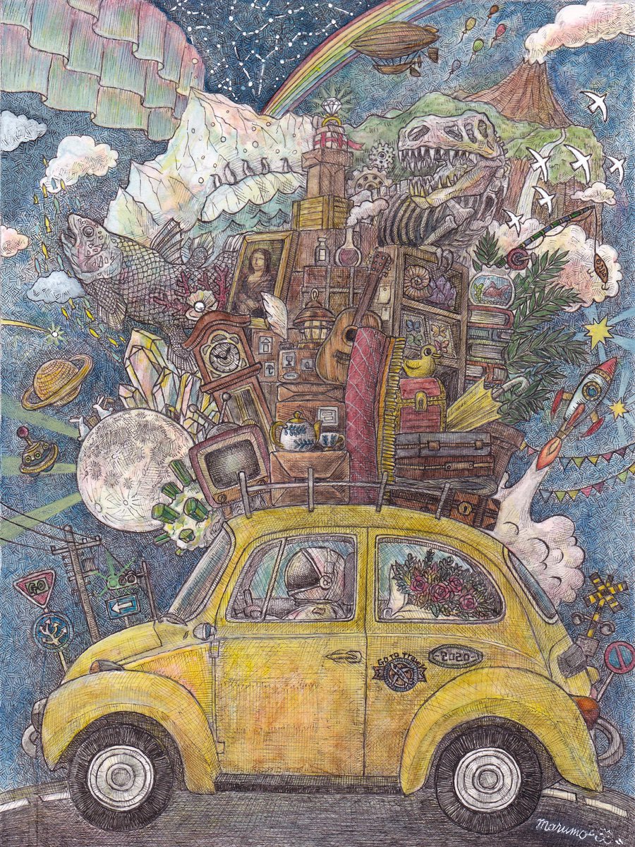 41 548 新作完成しました‼︎‼︎ 『夢のせて』 サイズ 200×150mm イラストボードにペン、透明水彩 #イラスト #絵 #アナログ絵 #ペン画 #空想 #細密画 #芸術の輪 #車 #旅 #illustration #art #ink #artwork #originalart 20/11/07 22:15