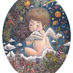 7 94 新作完成しました‼︎‼︎ 「ギフト」 サイズ:92×73mm(楕円) イラストボードにペン、透明水彩 #イラスト #アナログ絵 #ペン画 #絵 #細密画 #芸術の輪 #天使 #ink #art #illustration #artwork #originalart #angel 21/03/22 21:58