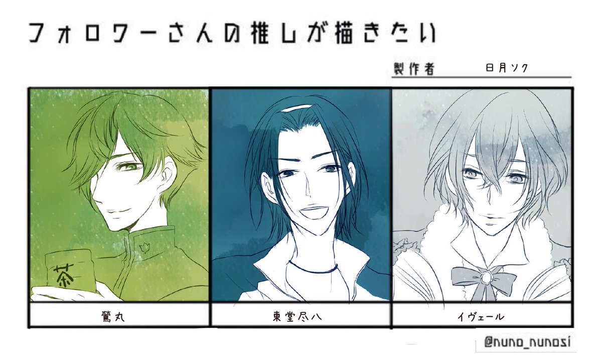 描いたこと無いキャラが多くて楽しかったー!!!! 遅くなりましたがリクエストくれた方々ありがとうございました😚 ただクオリティは低い・・・人様の推しなのに、ごめんね。 #フォロワーさんの推しが描きたい