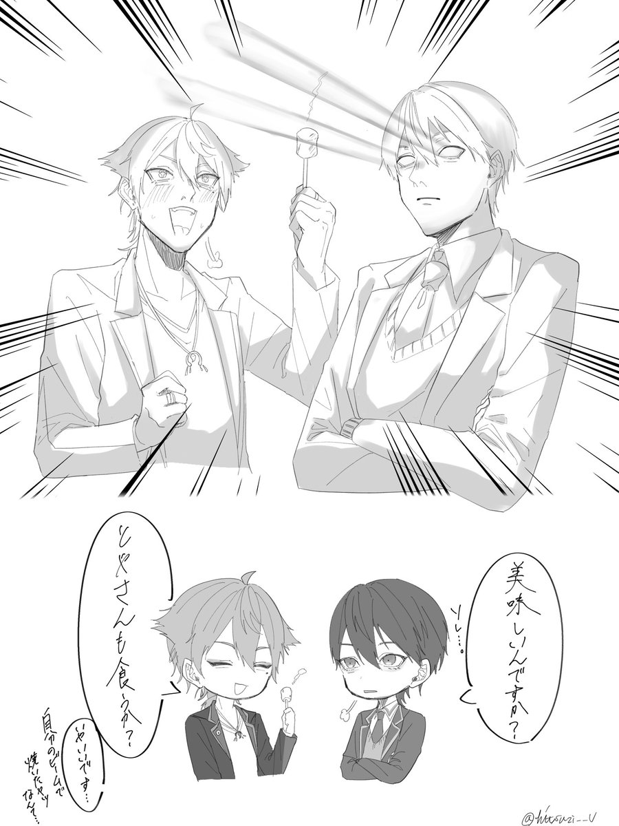 ⚠️捏造注意 剣持3.0の目からビームで焼きマシュマロをする伏見ガク。 #金剛力也像 #絵ガク