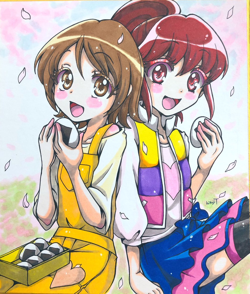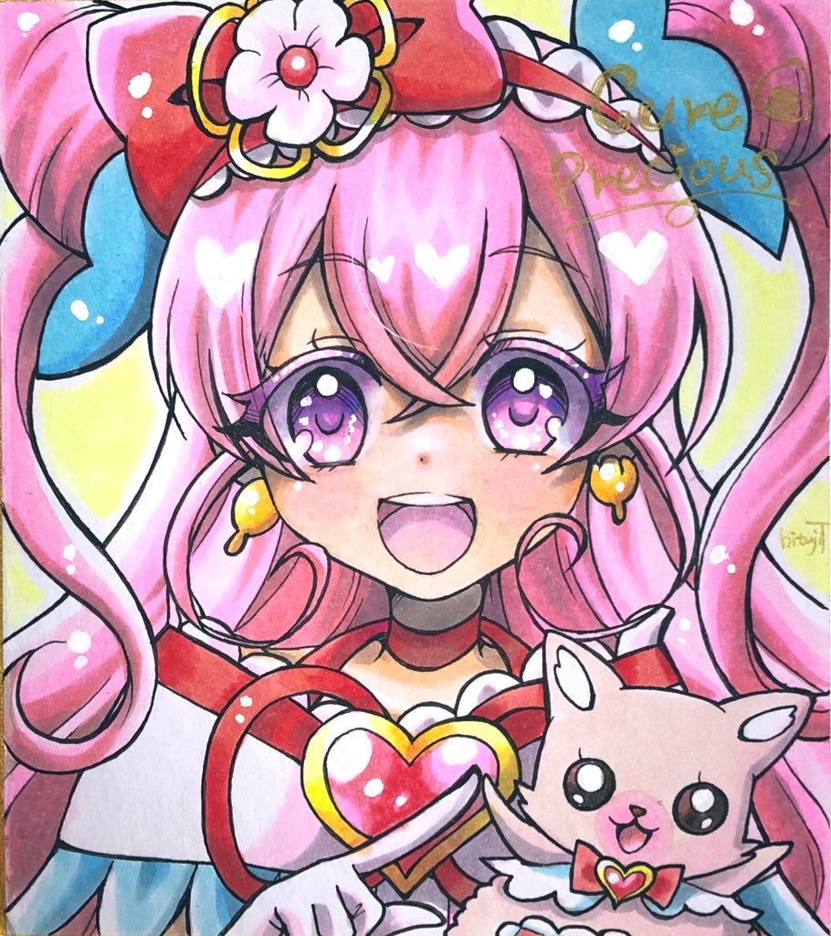 プリキュア、アナログ、その他からそれぞれ一枚ずつ。 背景のバラとかすみ草が結構大変だったのと、人数多くてペン入れすごい時間かかったのと、装飾が細かすぎてうわぁぁぁあってなったやつ #今までで作画カロリーMAXの作品上げようぜ