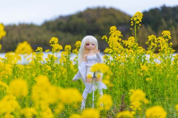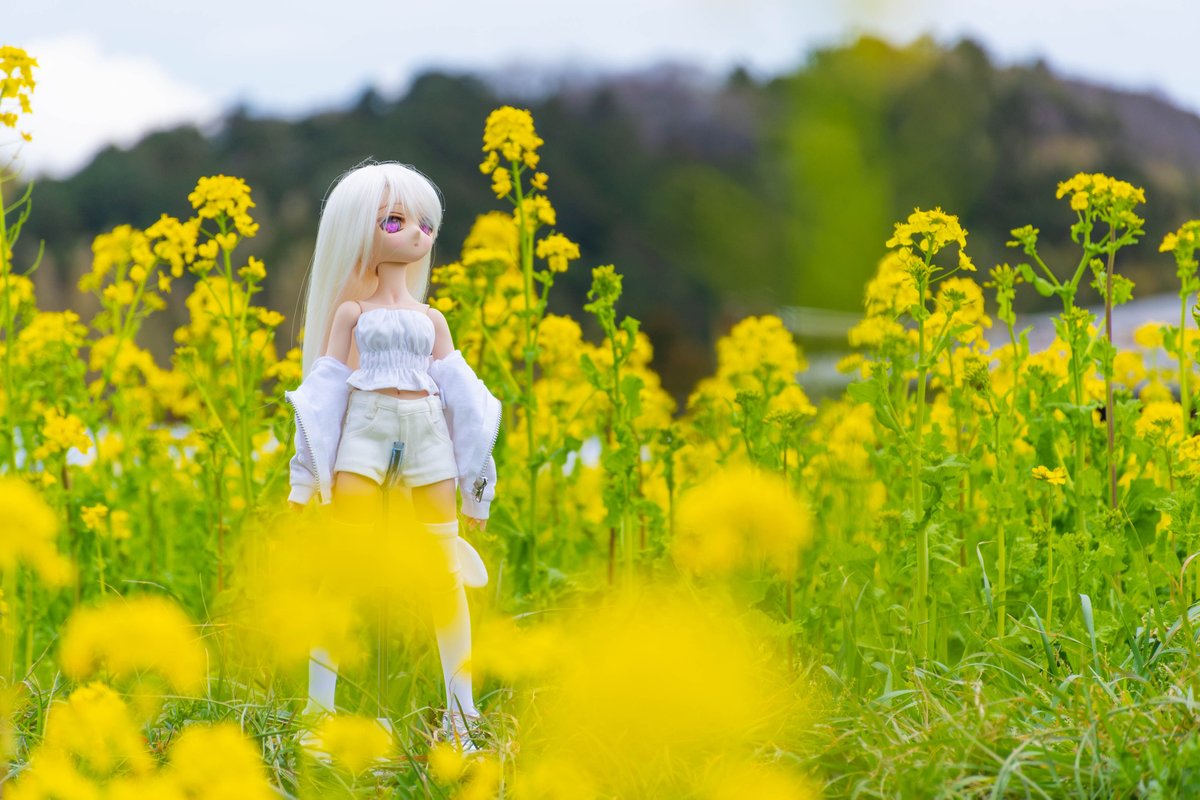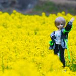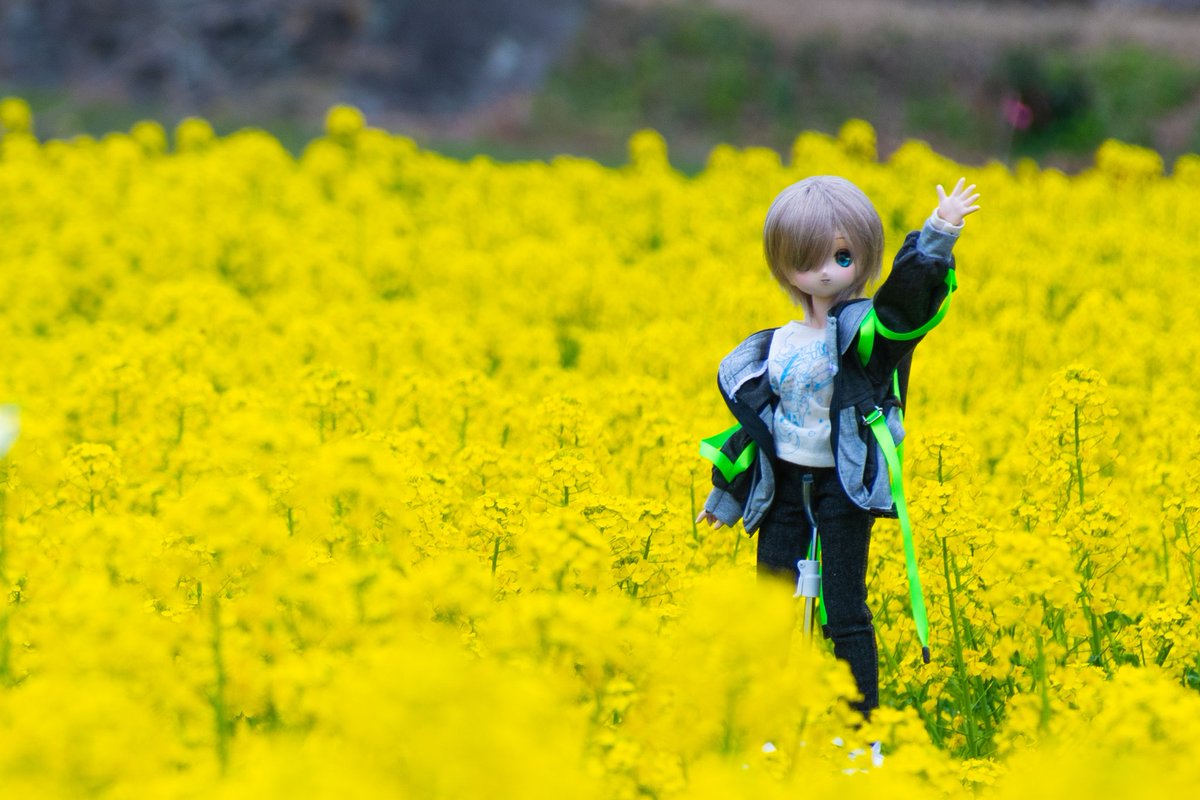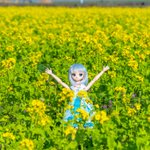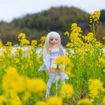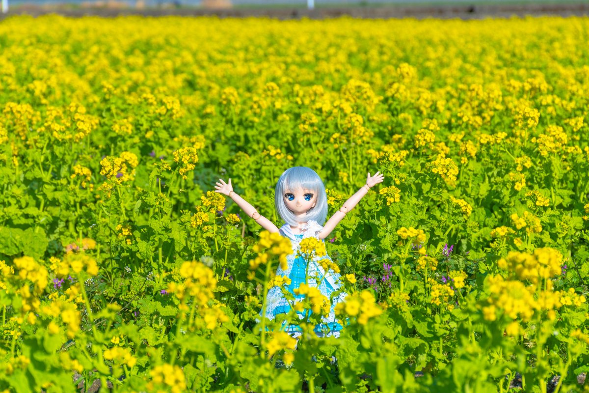 遠くに真っ黒な雲がいて焦りながらモデルになってもらったラカさん('ω`)こっちの菜の花は背が高かった #MDDはいいぞ #うちのこかわいい