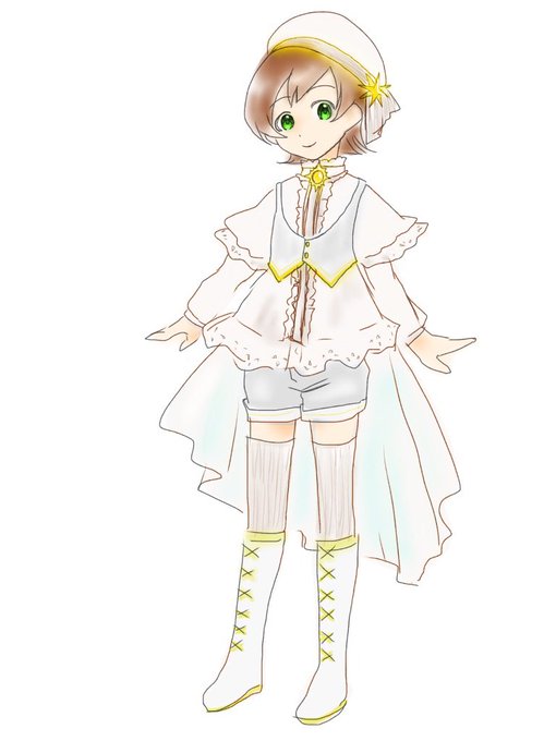 #寝る前ひなた 2枚目のSSRはもふもふくまさんだったけど、天使ひなたとアナザーで少年みのある衣装っていう妄想をしていた(デザイン力がないのでこの形は違った