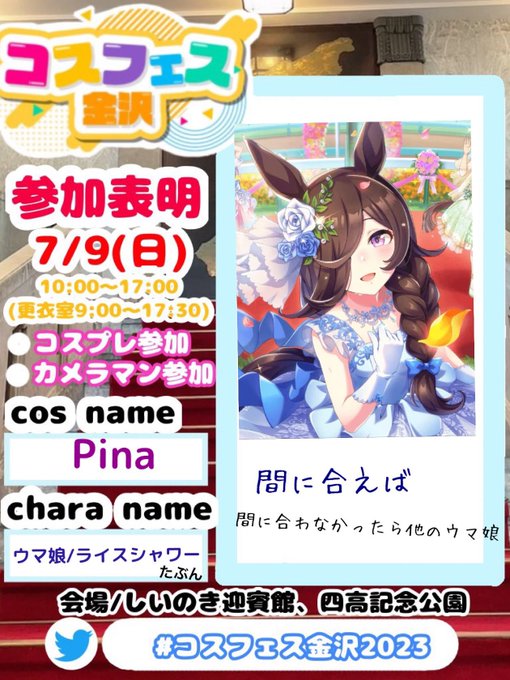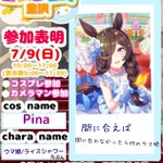#三連休はフォロワーさんが増えるらしい #レイヤーさんと繋がりたい ウマシャニRevel女 ほとんど北陸にいます! 最近はOPずぶずぶです ごく稀に衣装つくります!!! よろしくお願いします!
