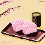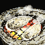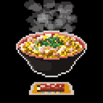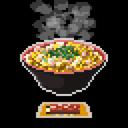 お題をもらって描きました! 「親子丼&おやつカルパス」 湯気むっず!! #ドット絵