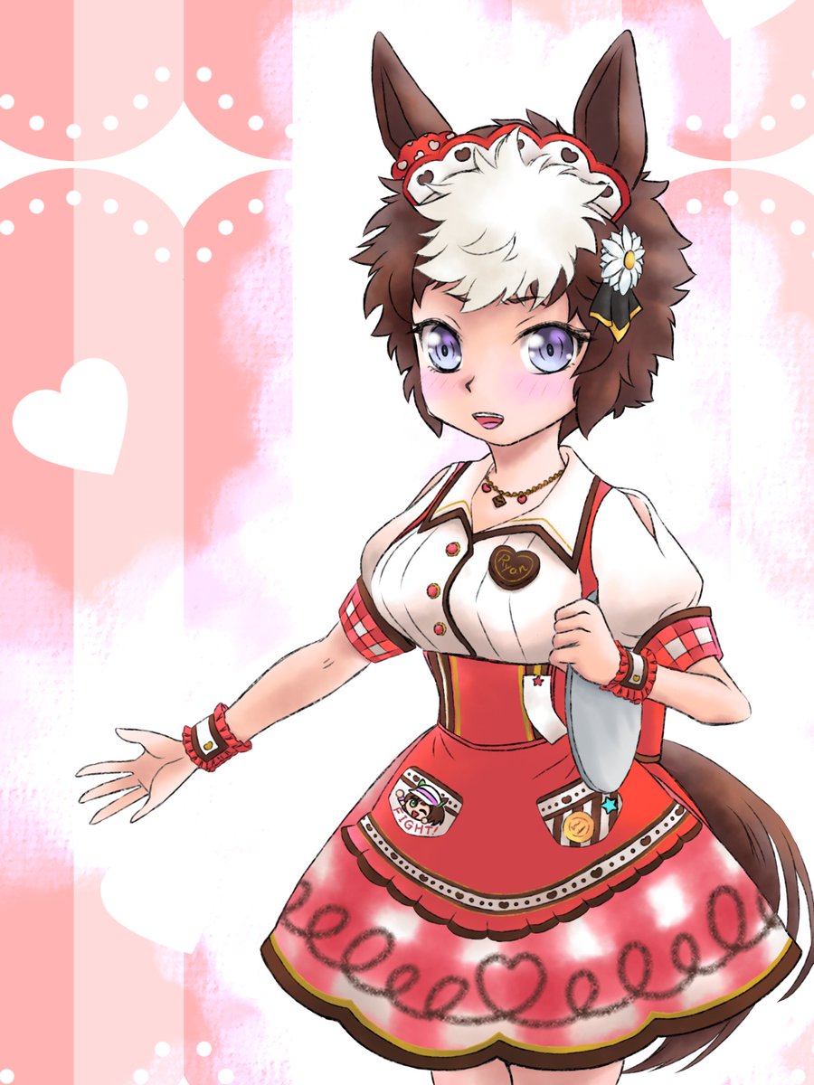 バレンタイン間に合ったな!(強めw) 差分もつけとく。衣装最初からデザインするチカラないのでアイネスからお借りしました。 ライアンかわいいよー💕 #ウマ娘 #イラスト #メジロライアン
