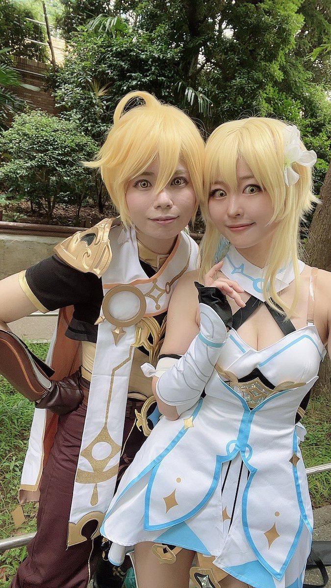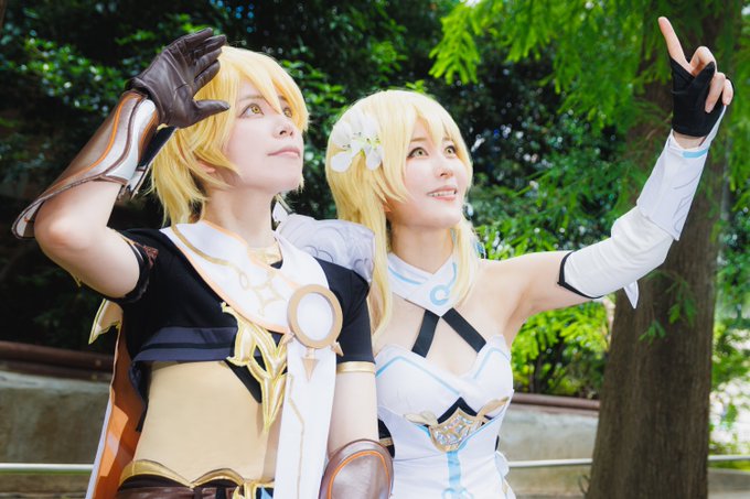 【※コスプレ※】 原神 ✧ 旅人 空:天扇様 蛍:ひよこ。 📷バンブー様(@1016_ban_boo ) #genshincosplay #GenshinImpact #cosplay #原神コスプレ #アコスタ池袋