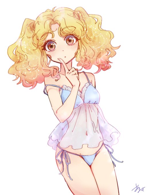ランジェリーのお仕事してるイメージゆめちゃん。とりあえず髪の毛を全体的に巻いた姿を描きたかった
