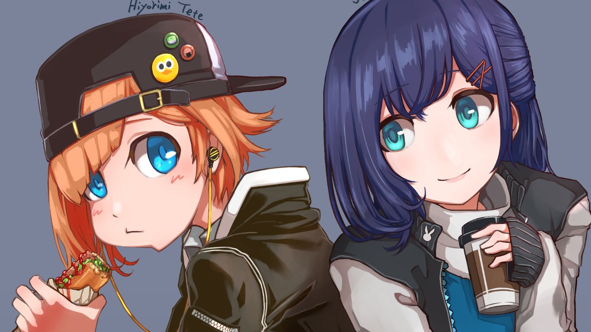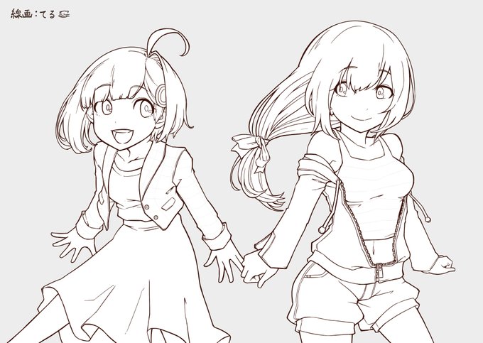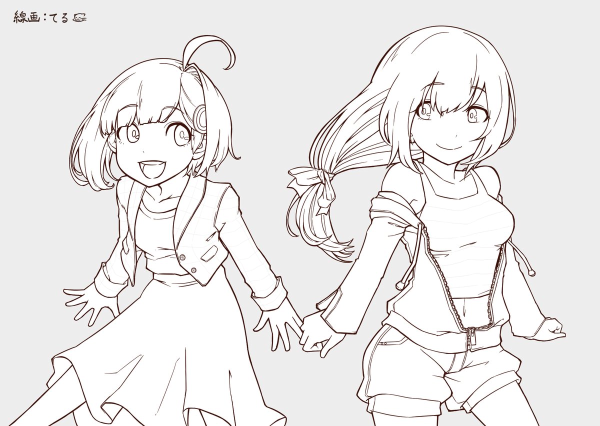 リクエストいただいた、ててちゃんといのりちゃんの衣装とっかえっこ描いてみました😇 ちょっぴり印象変わった、かな…? お暇な時のぬり絵にどうぞ🍵🍘 #いのりトリップ #ひよりみ観察日記