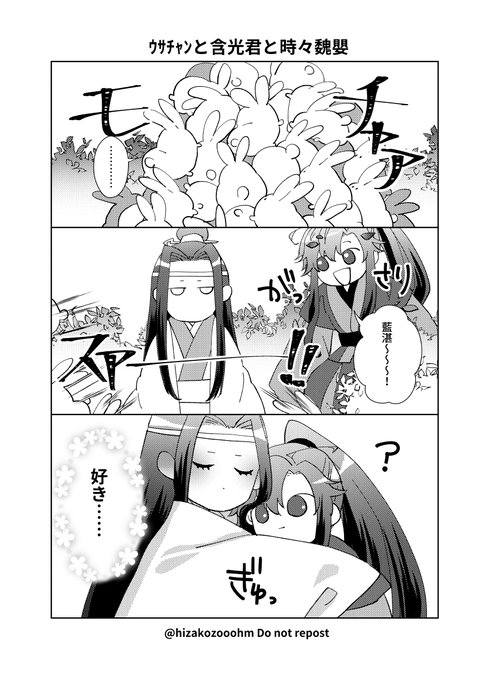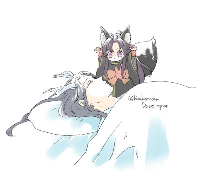 可愛かったので描いてみました!魏嬰の木登り練習でお尻を支えるお仕事中の藍湛。この後お袖にしまわれる。 #odaibako_hizakozooohm odaibako.net/detail/request…