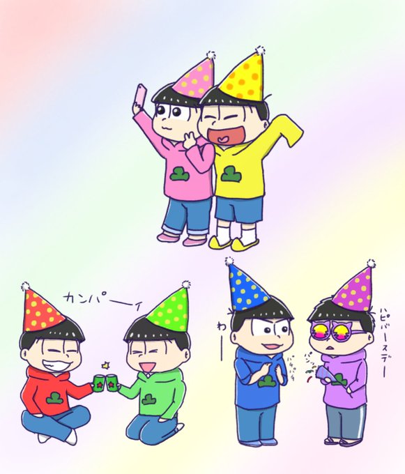 13 56 いっっけなーい遅刻遅刻ー(棒) すみませんむつごお誕絵もどきです😞 フリ〜トにポイポイ投げてたやつ。 6人まとめてが無理だったので好きなコンビでちまちま描きました 改めておたおめでした🙇♂️(まじですまん…) 21/05/28 22:00