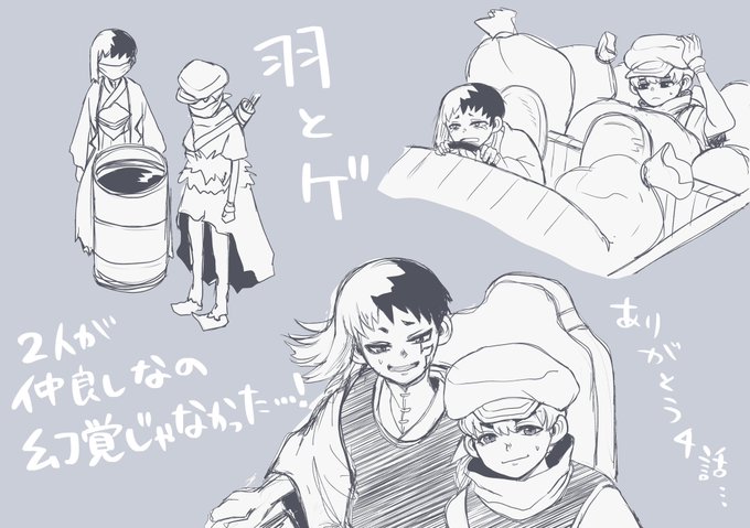 26 115 前描いた原作のこの辺がちょっとずつ変わった感じで描かれてたけどめちゃめちゃ良かった……✌🏻 うきょ〜ちゃんの顔そのままで良かった💓 せんくーは会話してたね…遊んであげるんだね…🥺💓 そんで顔面じゃなくて頭でやはりアニメは優しい✌🏻笑 23/04/06 23:51