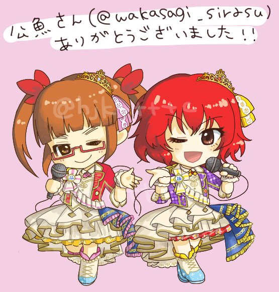 カンカンカンカン!!!! 池袋晶葉ちゃんと村上巴さんを描いた! 公魚さん(#wakasagi_sirasu)がMOIWから配られてる名刺用イラストのご依頼でした!みんなも現場で公魚さんの名刺を貰おう! ふたりともかわいく描けたのでみてって~ 見た?ありがと!!!