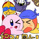 昔漫画描いてた時の絵のタッチのままパパっとお祝い絵描いてみた! ちなみに右上のキャラは伝説の隠しキャラです! #カービィのハッピーバースデー #星のカービィ31周年