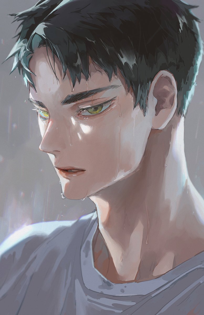 ochaさんの「初熱」が素晴らしくて読み返す度に雨宿りする若のゆっくり振り向く描写について考えてしまうので描いてみました。許可を貰って。妙に写実ぽくなってしまった。描いてもまだ考えてしまう。どんな瞳だったのかな…雨の雫と若と…モンモンモンモン… twitter.com/otyocot_/statu…