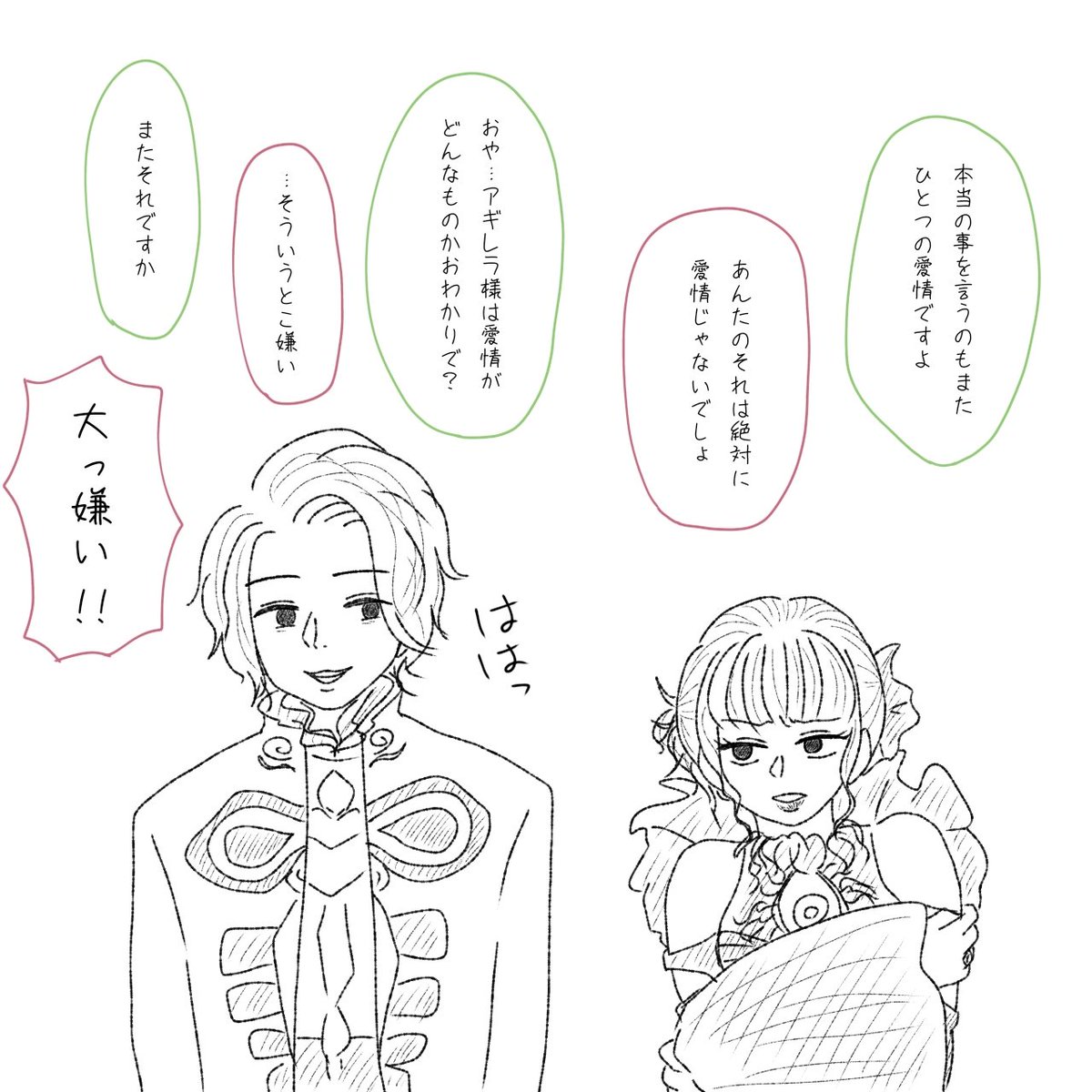 落書き アギ様とオルさん オ「ゴリラ並みに力強いですね」 ア「怒」