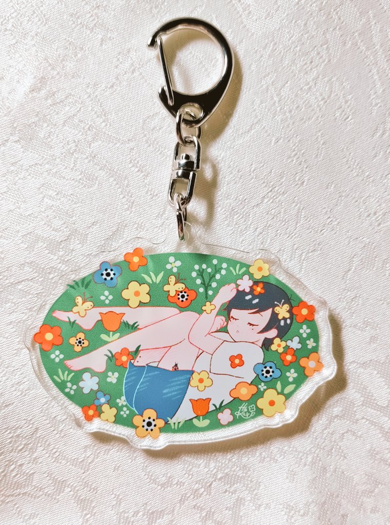 【#幸せの花園 vol.3】 🌷グッズ紹介②🌷 アクリルキーホルダー 『小さなゆりかご』 ¥700 他にもポストカード、イラスト集、 原画も展示作品中です✨ #春の創作クラスタフォロー祭 twitter.com/hkr_8/status/1…