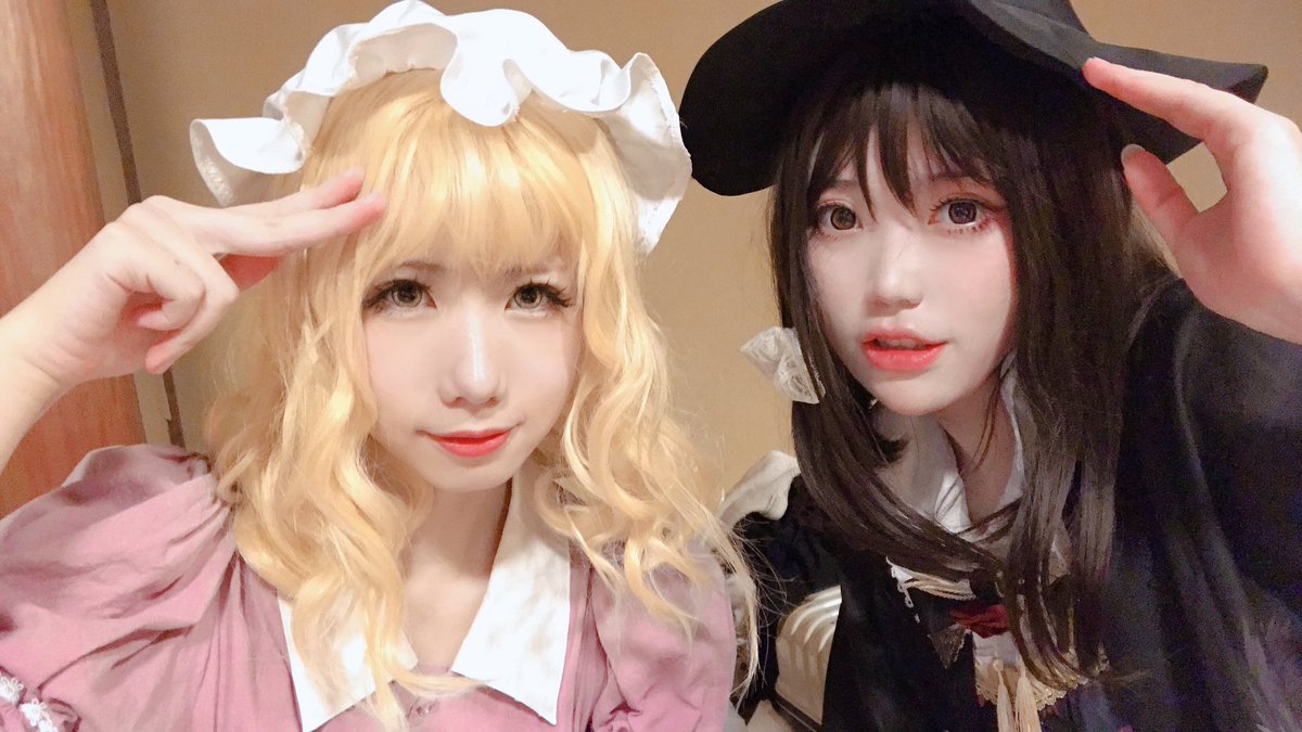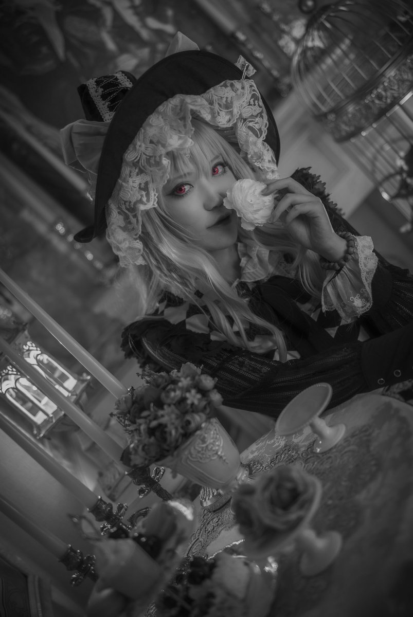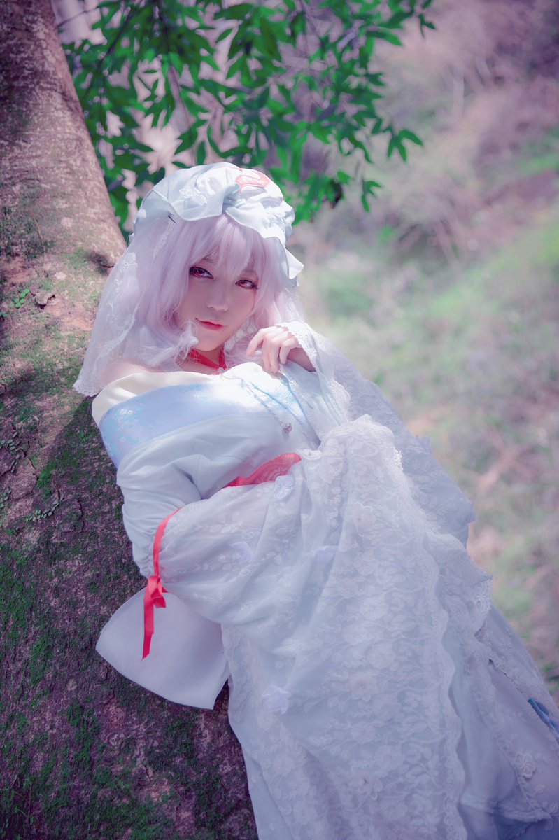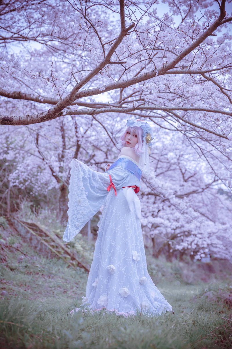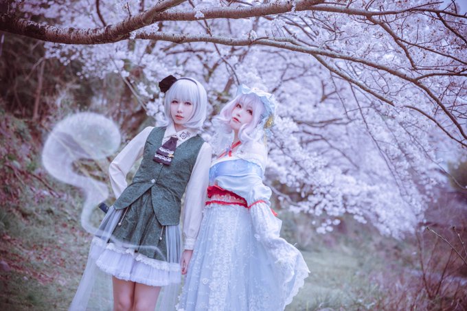 「ばらばらにちらばる花びら、しずくは紅。 たどりついた終わり、 生まれ變わりの痛み。」 🌸西行寺幽々子:自分 🌸魂魄妖夢:@renka_kis photo thx @stock_wa #東方project #コスプレ