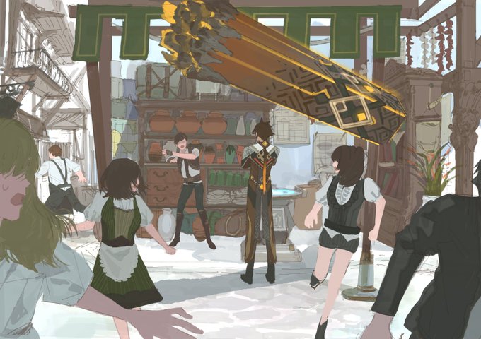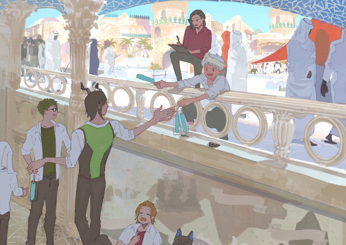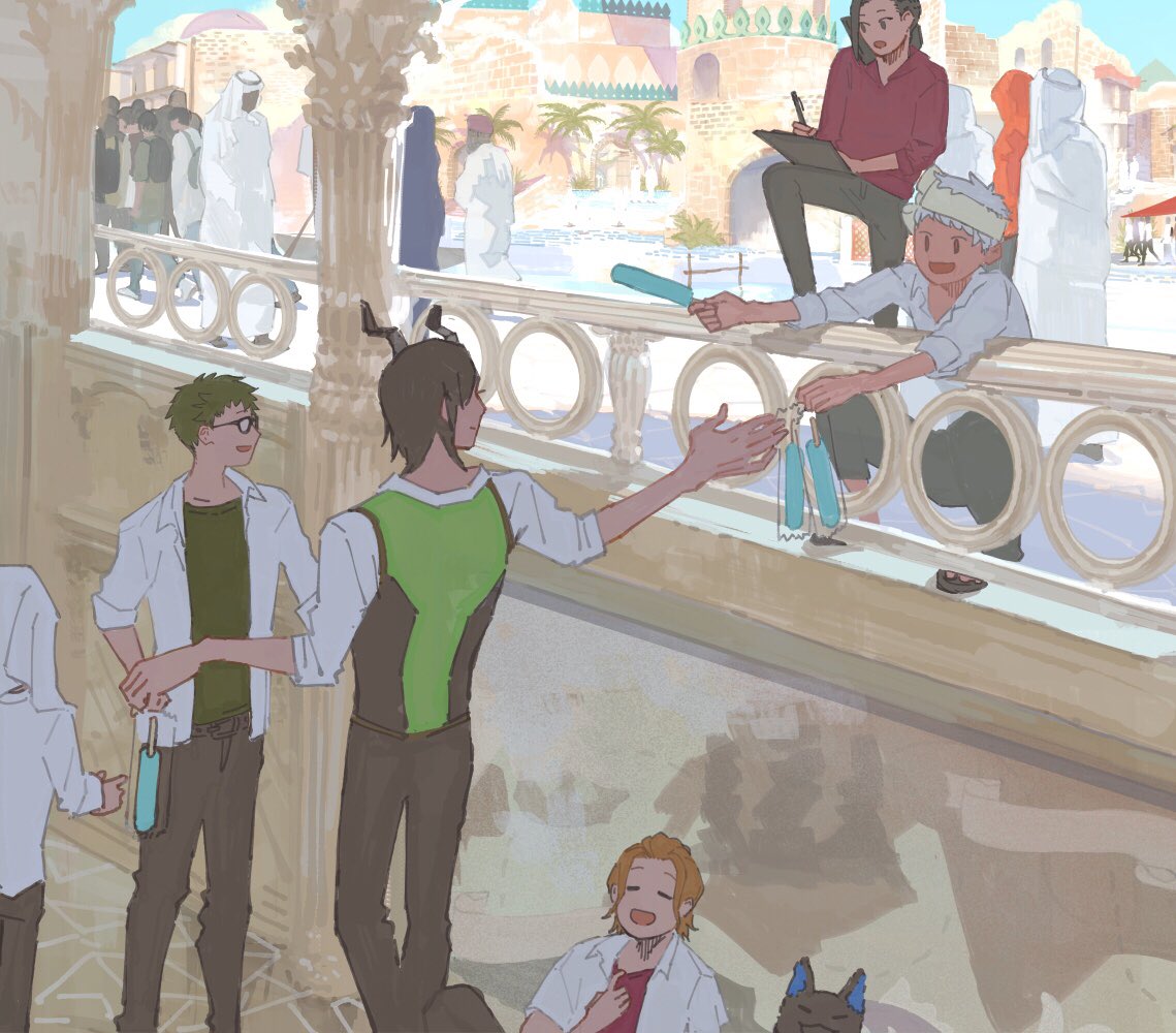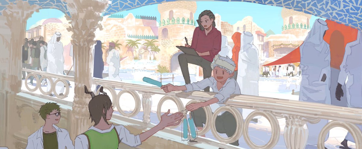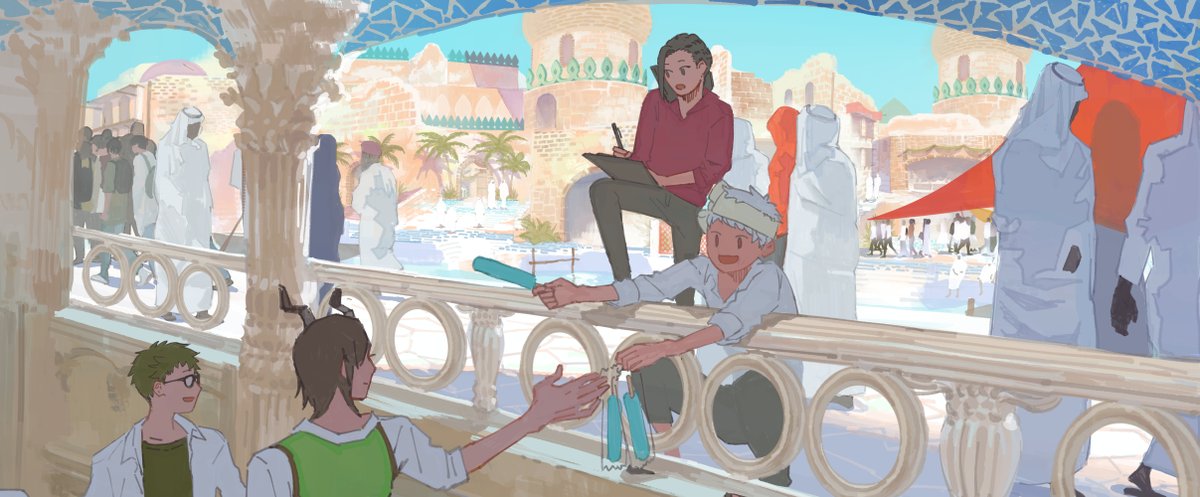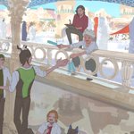 #twstファンアート 絹の街最高でした🙏 熱く乾いたイガイガの石畳をアチアチ言って歩いて、河や噴水で足冷やして、 疲れたら 風がよく通る日陰の通路で休んで、 足の裏が痛かったのも良い思い出になったりするといいね 二行目から下は全部幻覚だよ
