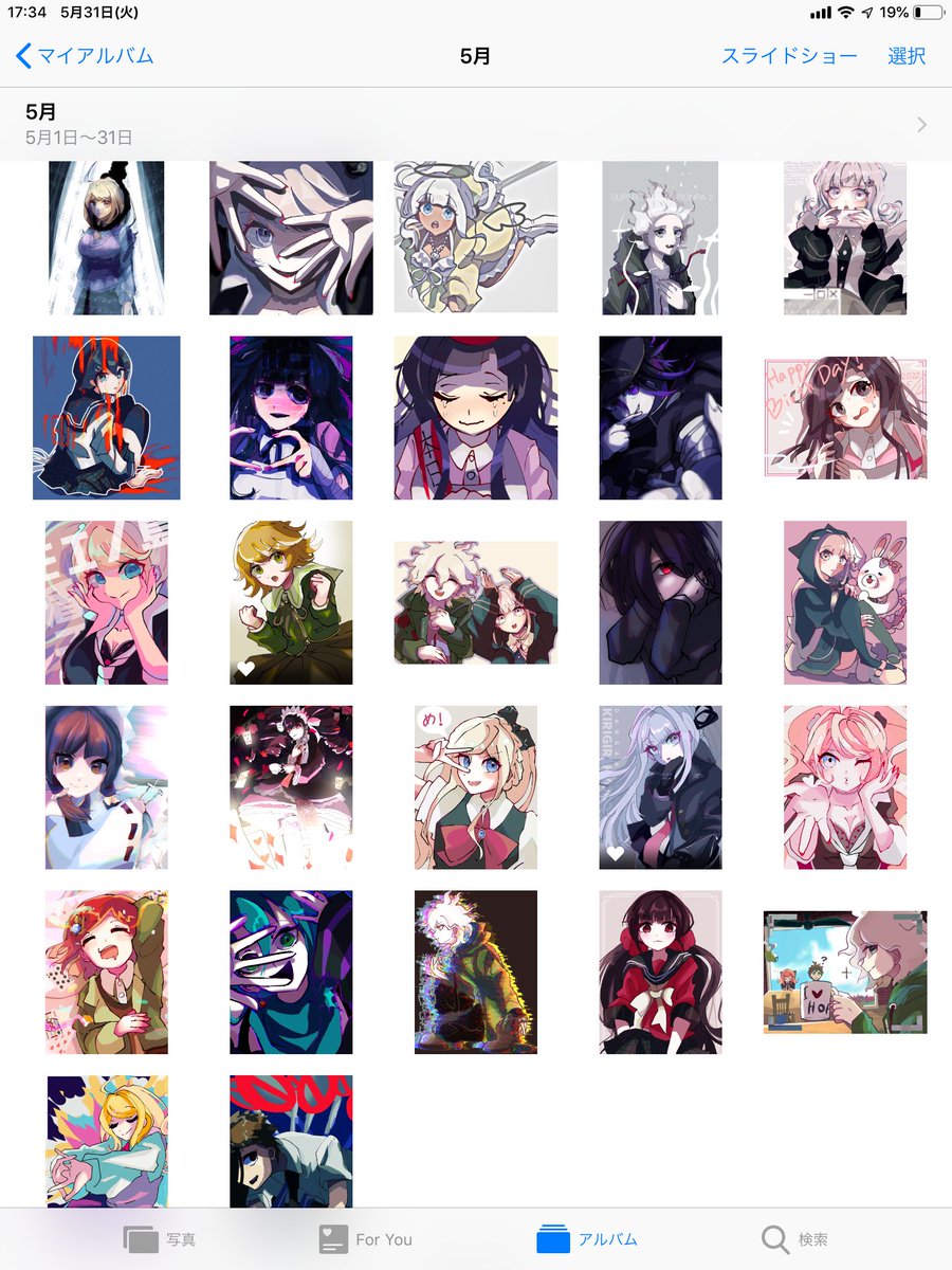 #今月描いた絵を晒そう 合作のもの、ネッ友ちゃんたちと創作してるのを除いただいたいロンパのラフやアナログを含む30枚