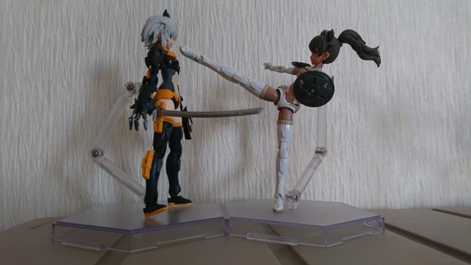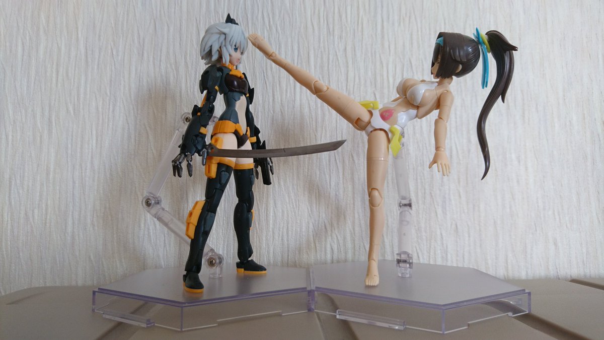 リシェッタを相手にルルチェ、朱羅、皇巫で開脚の検証。 MSとメガミデバイスはほぼ同サイズだが皇巫は一回り大きい。 ルルチェは顎くらい。 朱羅は額くらい。 皇巫は頭の上を通ってしまう。 これが新型か… #30MS #メガミデバイス #皇巫スサノヲ