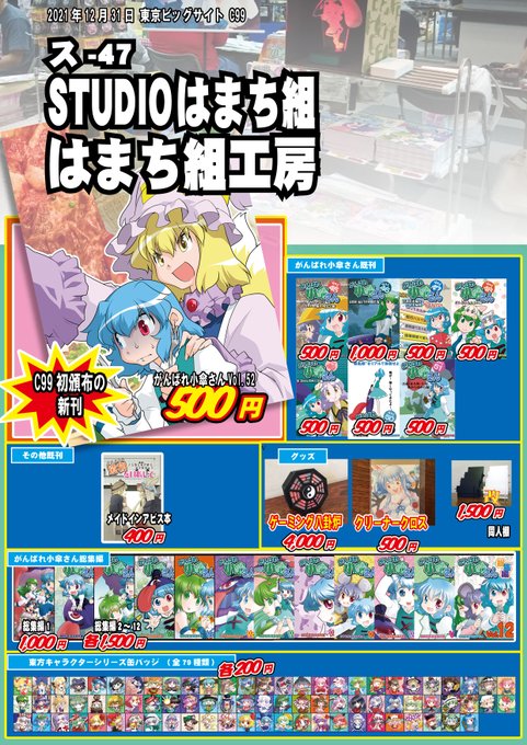 ◎あなたのサークル「STUDIOはまち組」は 土曜日 東地区 “J” ブロック 56b に配置されています。 ◎あなたのサークル「STUDIOはまち組」は 日曜日 東地区 “シ” ブロック 31b に配置されています。 両日通っておりました! よろしくお願いします! ちなみにV本と東方本出します!