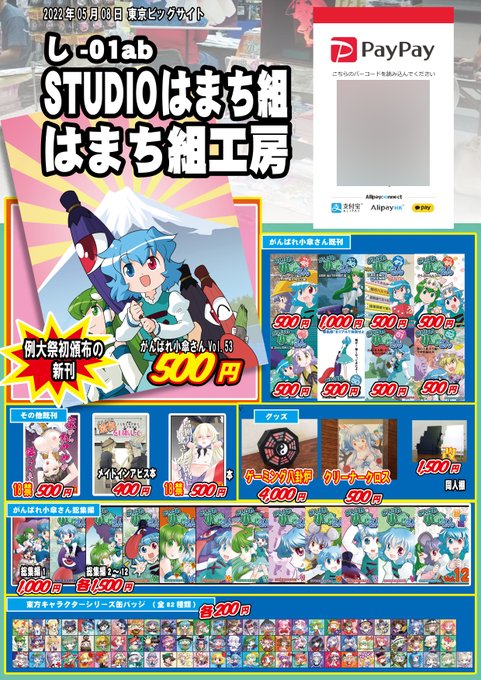 37 76 ◎あなたのサークル「STUDIOはまち組」は 土曜日 東地区 “J” ブロック 56b に配置されています。 ◎あなたのサークル「STUDIOはまち組」は 日曜日 東地区 “シ” ブロック 31b に配置されています。 両日通っておりました! よろしくお願いします! ちなみにV本と東方本出します! 23/06/09 18:50