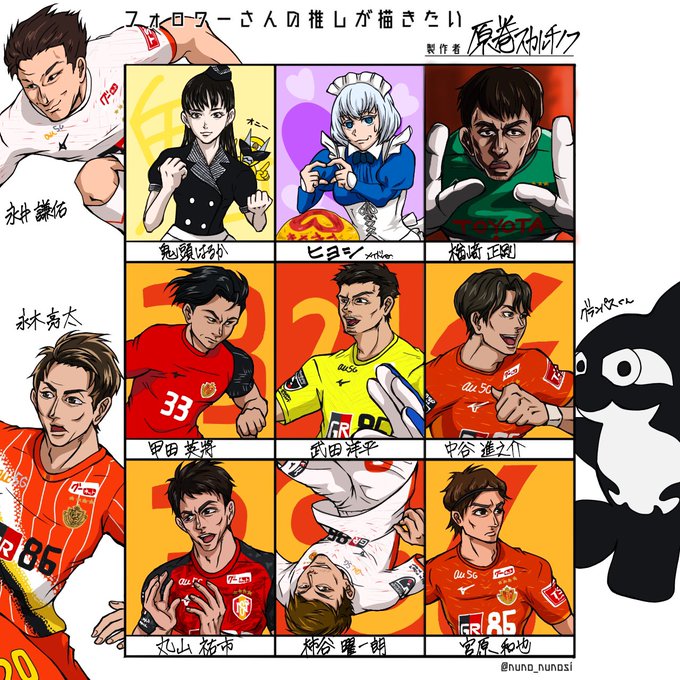 何とか仕上がった浦和戦のやつ。明日も浦和戦。 昨年の覇者としては絶対に負けられない戦い。 永木選手とレオナルド選手はまた次描きます。 今回は先日得点決めた3名をピックアップ。 #grampus #グラサポお絵描き部