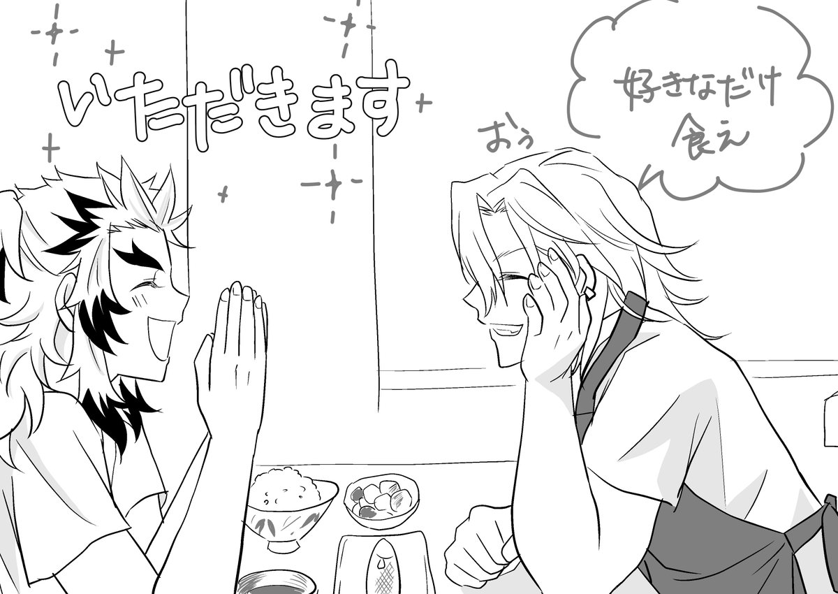 【 エプロン】 #宇煉ワンドロワンライ(@uren_1h_RT) 💎さんがエプロンしてんのよ、分かり辛いけど・・・(;´∀`) やっぱりご飯も🔥さんに全部あげちゃいました(笑) うちんとこの💎さんは🔥さんに甘いです。