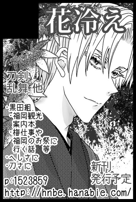 2022年7月18日CC福岡56、A館 き40b「花冷え」 とうらぶ(黒田組、へしさに)等。 「ゆうひ」様と隣接しております! (新刊は出たら博さにの予定です) chococat.booth.pm