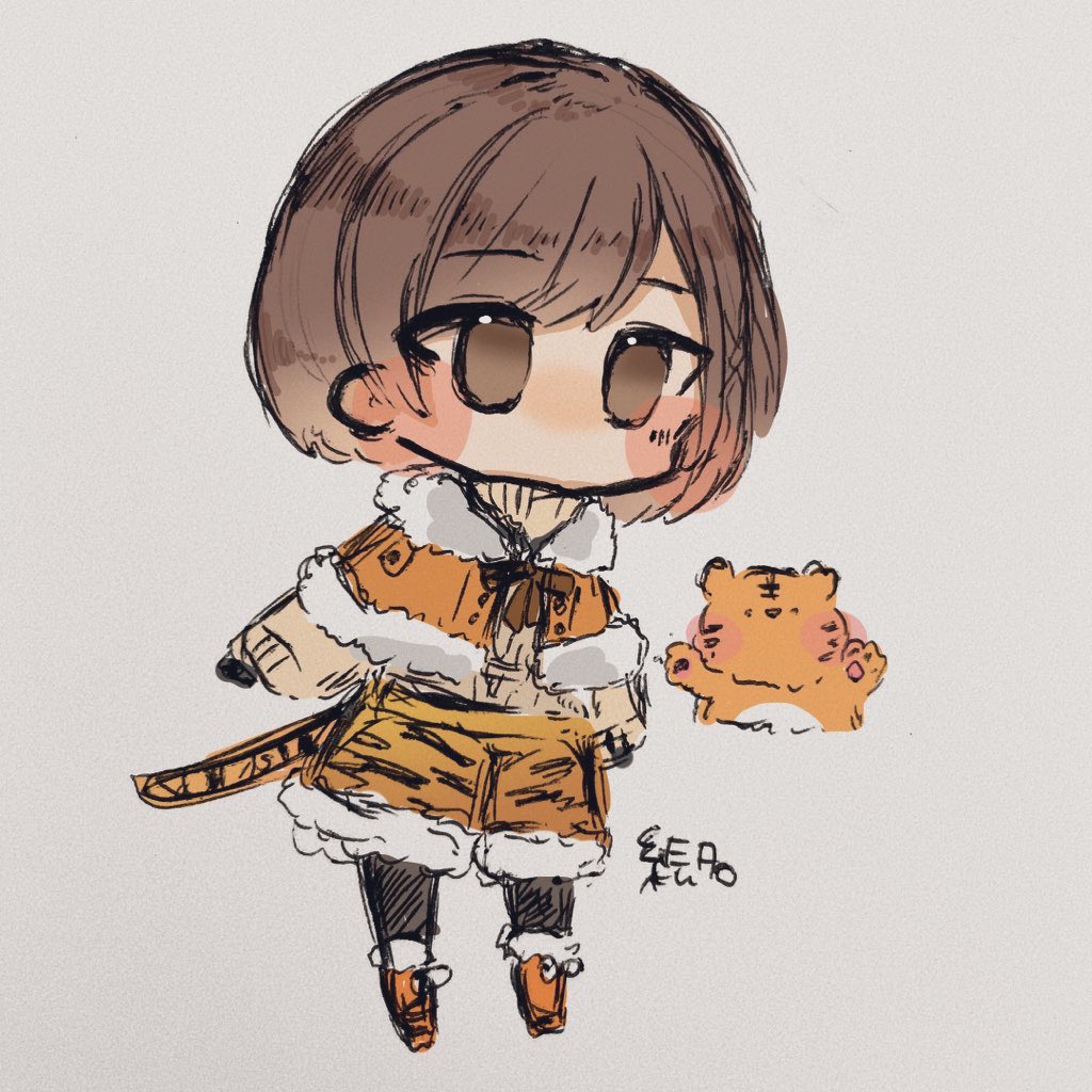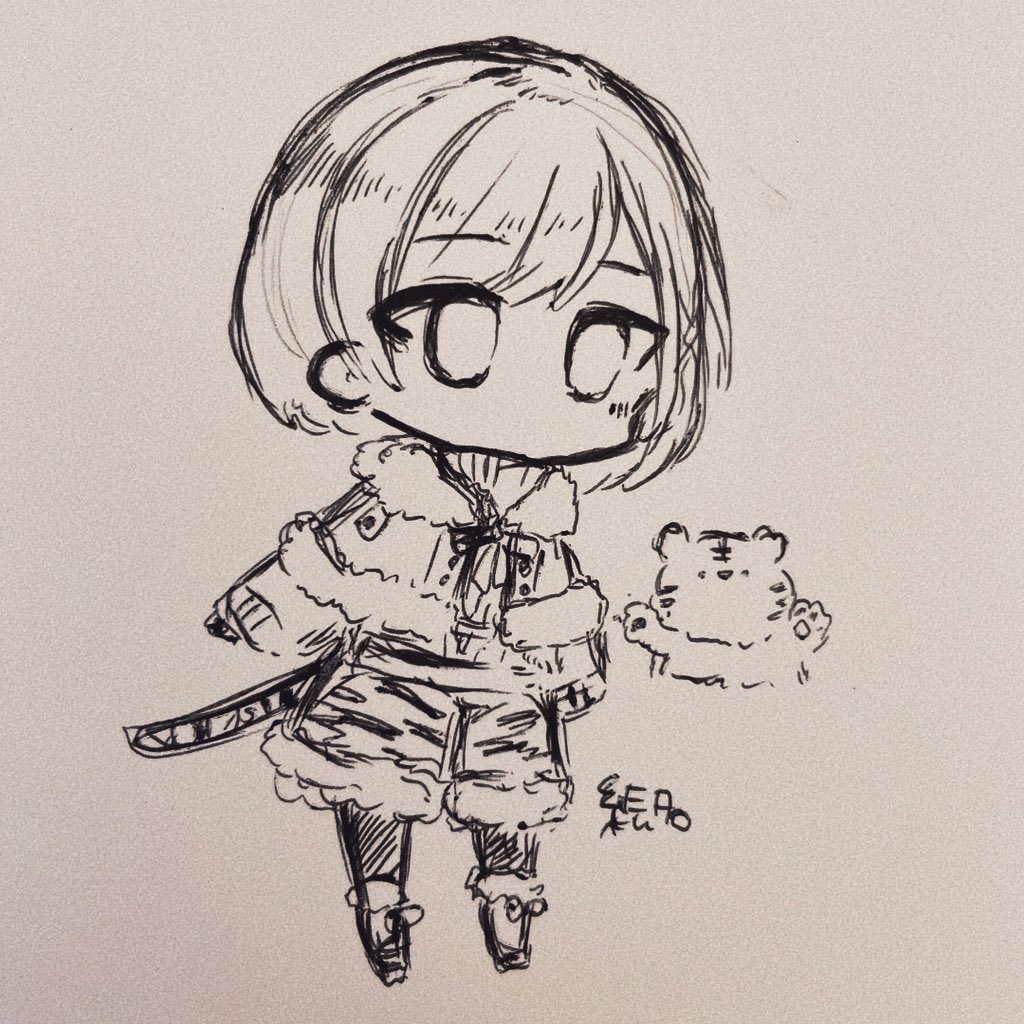 珍しくアナログで描いてスマホに取り込んで指で色塗ったえななん🐯 #prsk_FA