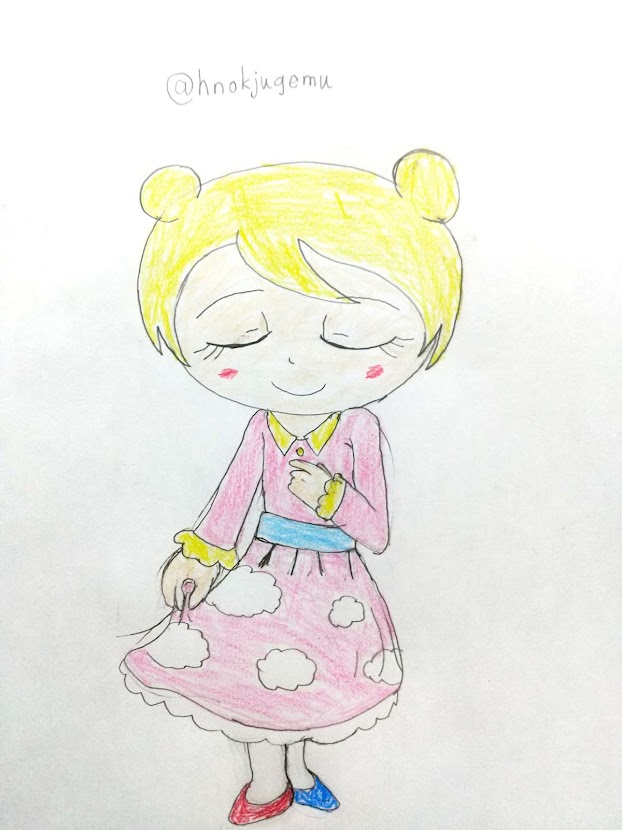 続いてこちら!このツイートで小出しした普段着ローラちゃんの全身像を公開! この前のはパジャマっぽかったけど、実際に全身像描いてみたら、驚くほどちゃんとした普段着になって自分でも驚いていたり…… twitter.com/hnokjugemu/sta…